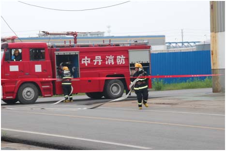 消防組參氯鋼瓶區(qū)周圍上空用消防水進(jìn)行噴霧吸附、稀釋