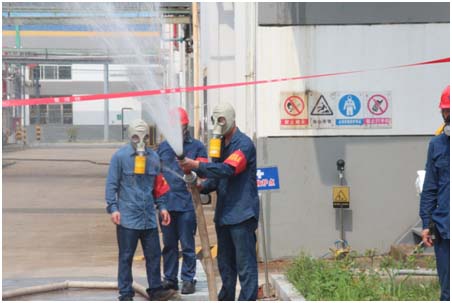 二、PEN車間氯化通氯區(qū)液氯鋼瓶閥門泄漏引發(fā)周圍環(huán)境惡化,突發(fā)事故的緊急處置演練